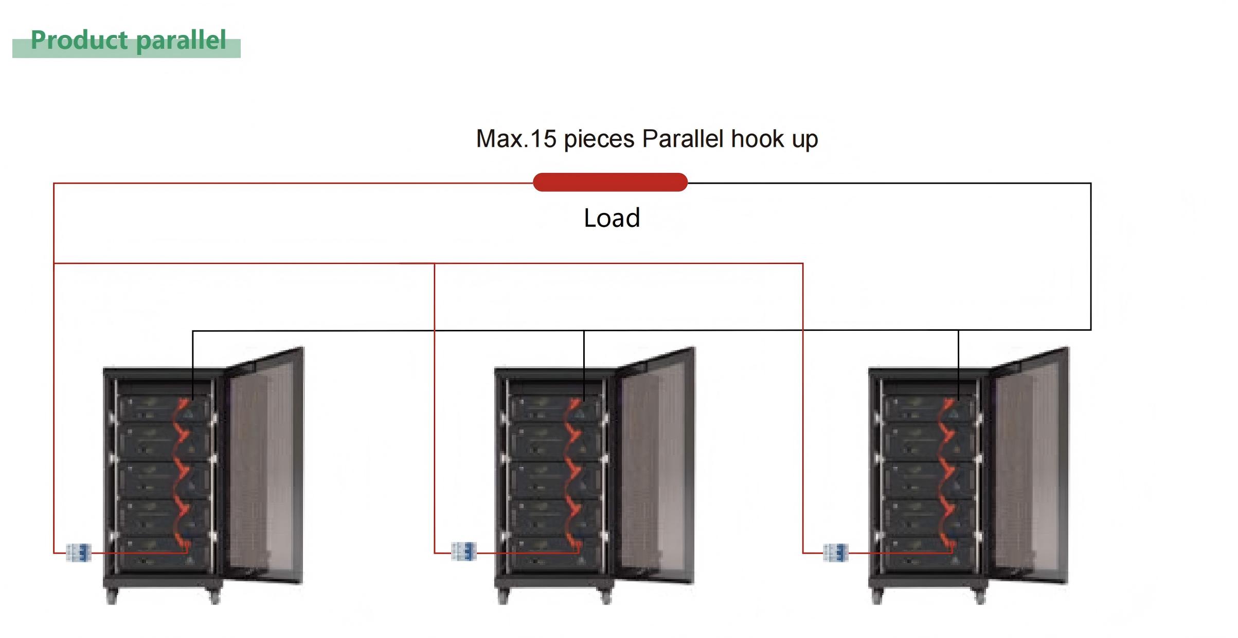 Cabinet -type energy storage products are mainly: battery box (PACK), battery cabinet. The battery box has 15 string or 16 string of iron phosphate batteries, and the rated voltage corresponds to 48V and 51.2V, respectively; the maximum working current is 100A; supports RS232 and RS485/CAN communication functions, which have a variety of sleep and wake -up modes; battery box supports parallel, at most, maximum Can be parallel to 15 battery packs.